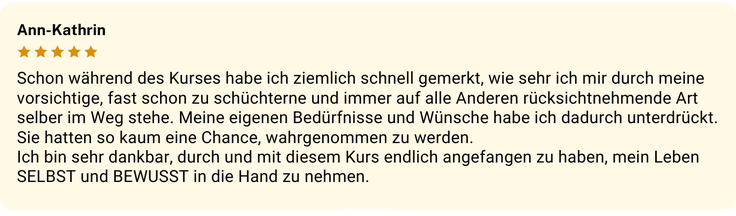 Mit 1:1-Support von mir in 2 Live-Calls startet der Kurs voraussichtlich wieder im Herbst 2024.